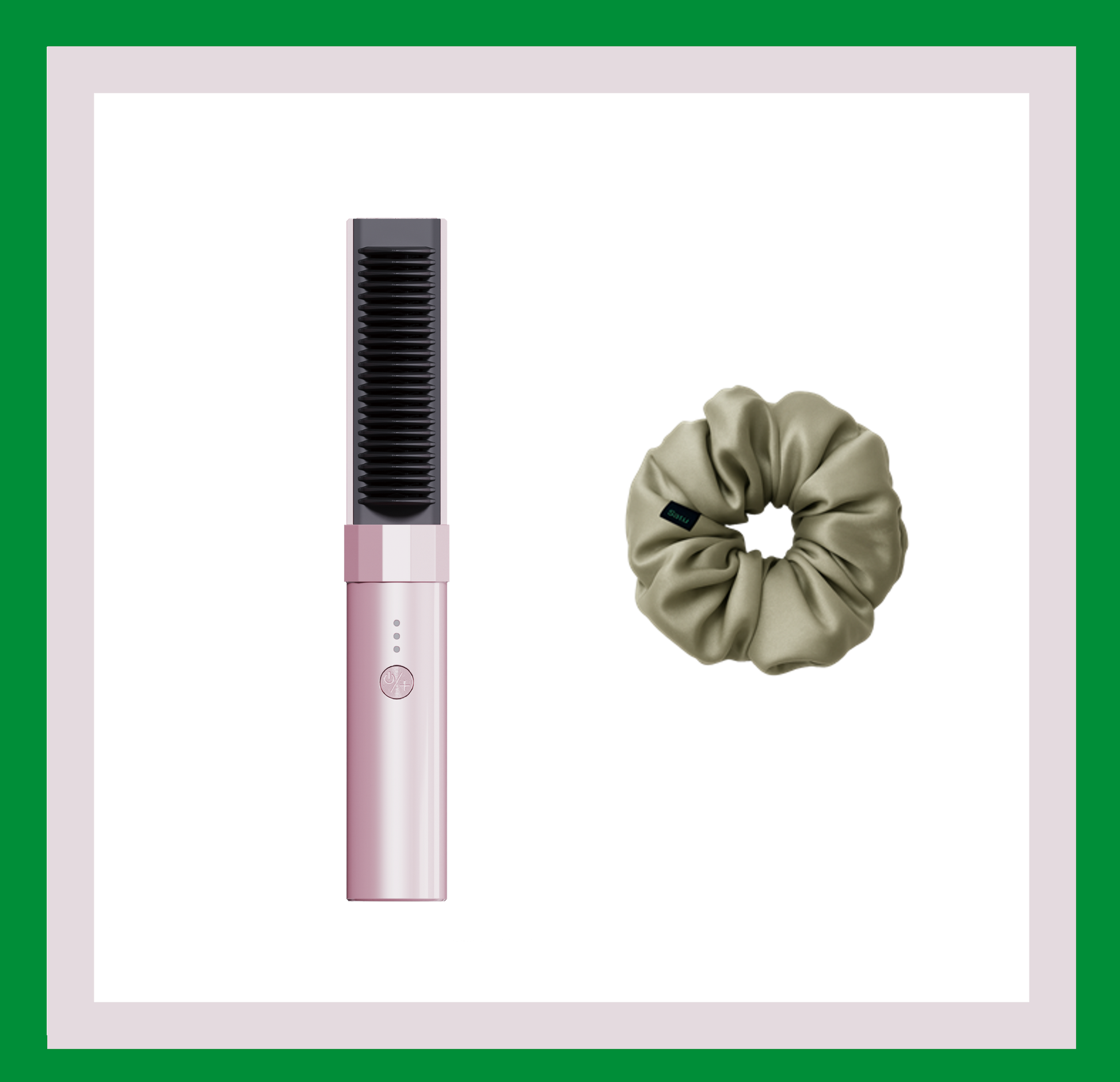 SATU HAIR MINI 直髮梳&SATU Classic 100% 真丝发圈 墨绿